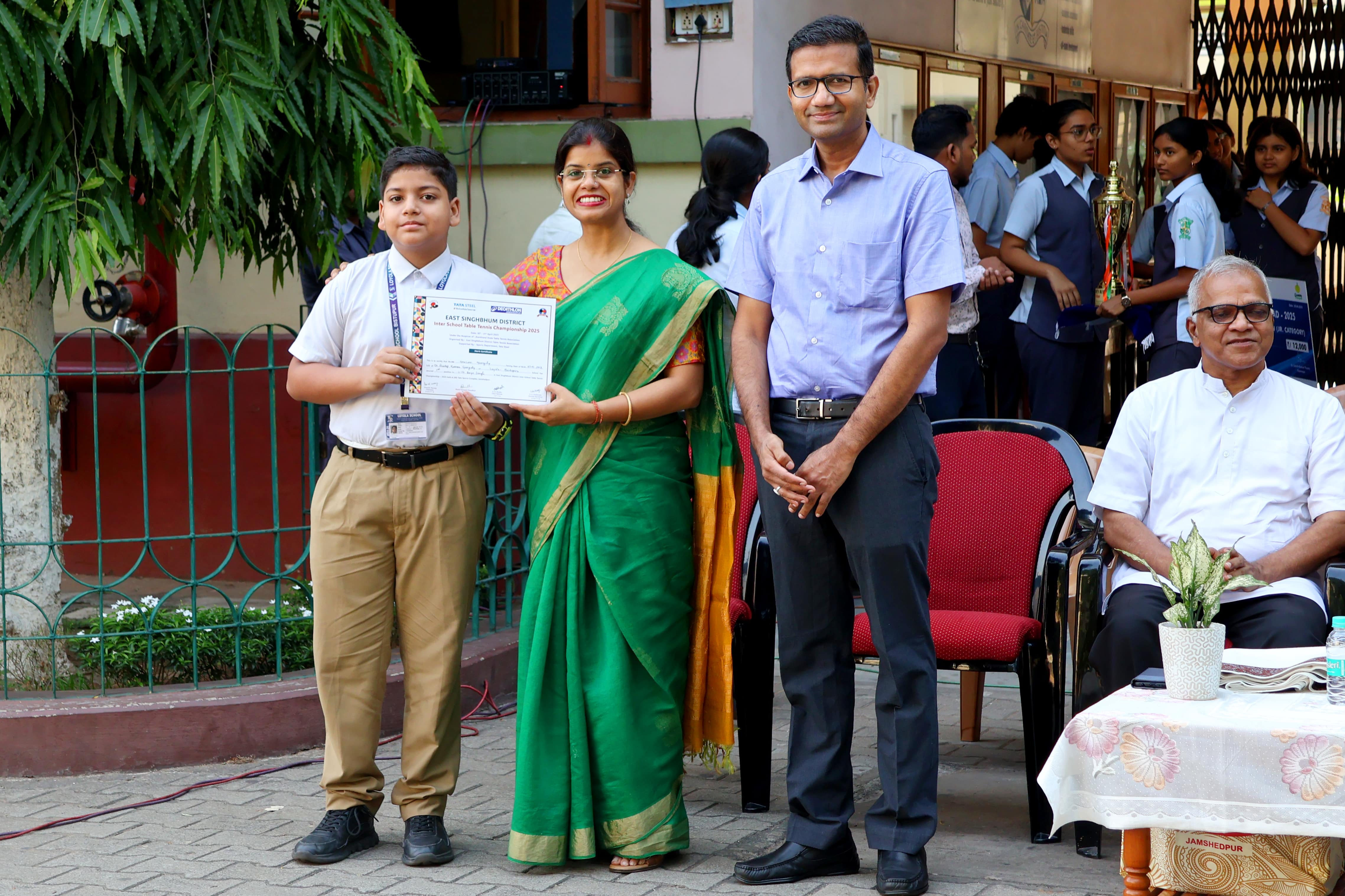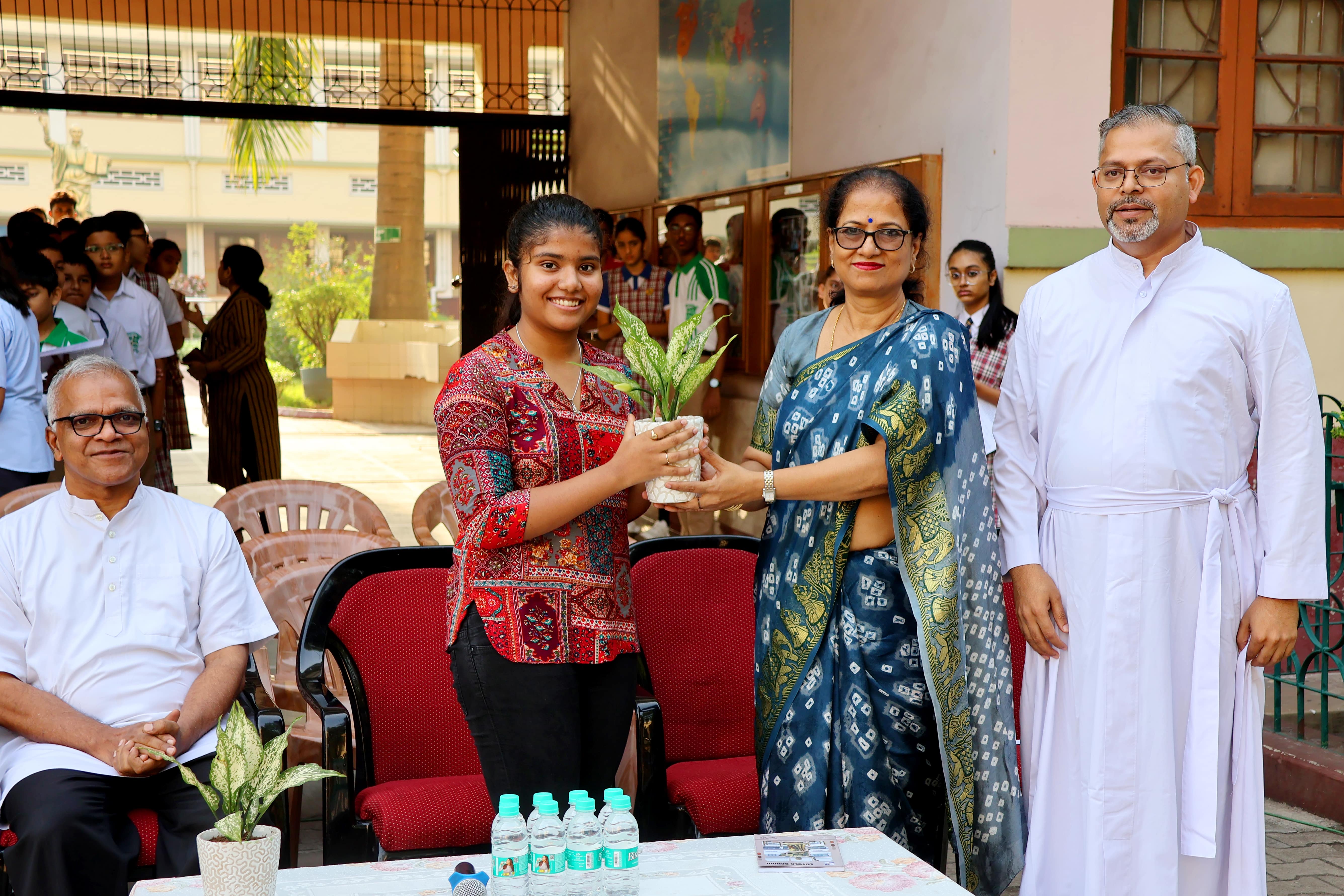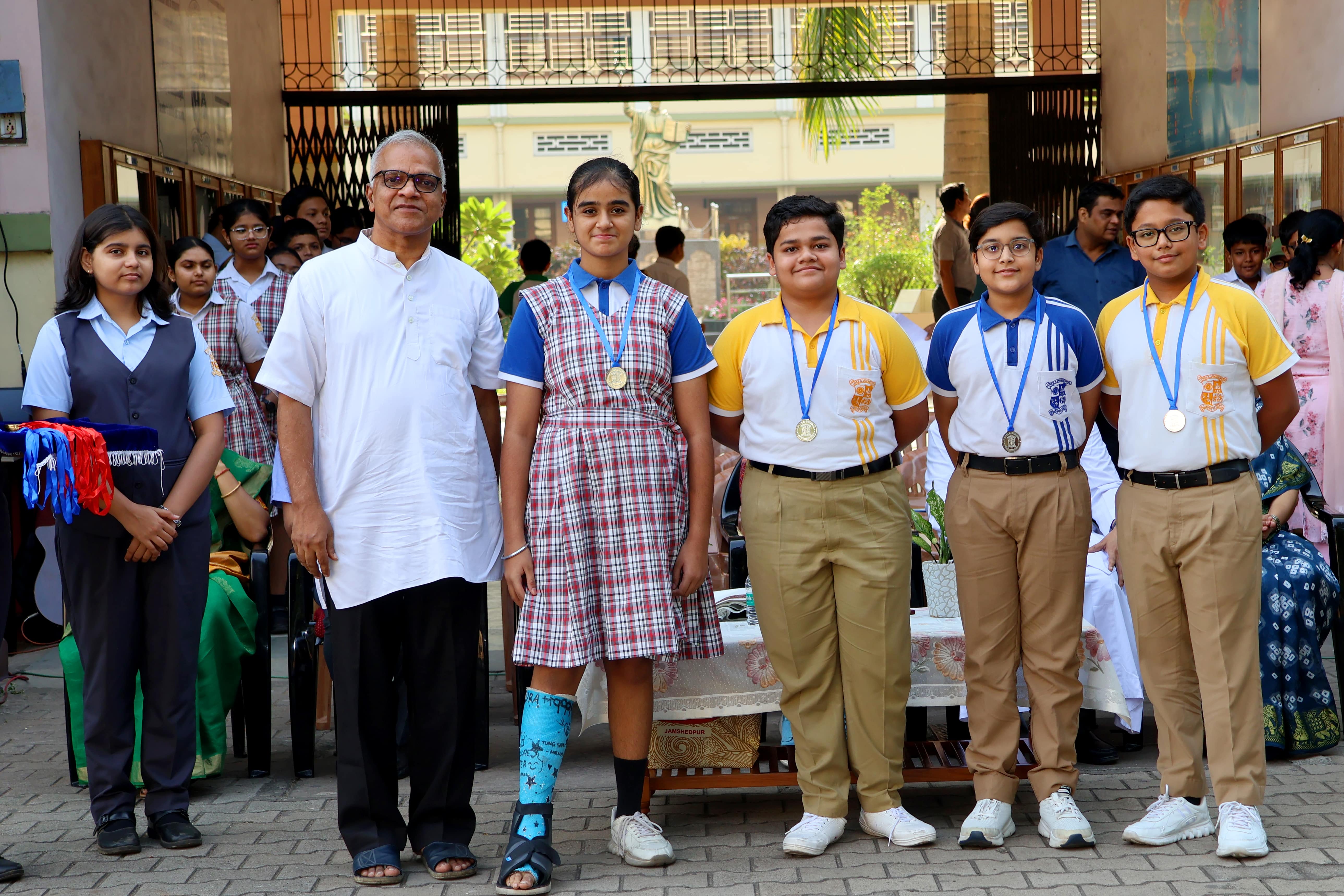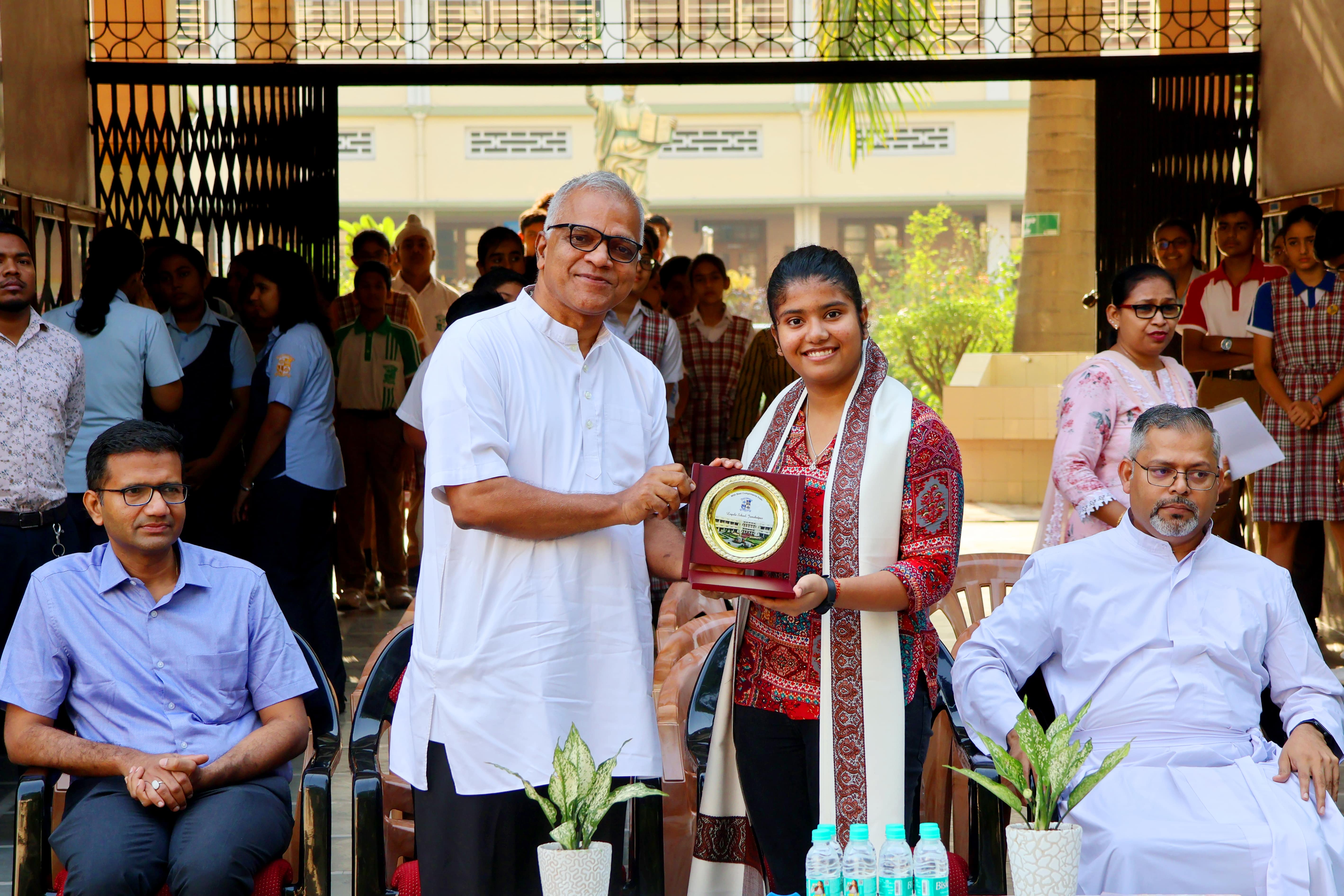 Loyola School, Jamshedpur, held a special assembly on 5th May 2025 to honour excellence in academics and co-curricular achievements. The highlight of the event was the felicitation of the National Topper, Shambhavi Jaiswal in the ICSE 2024-25 examinations, who scored an average of 100% . Currently pursuing Science at DAV and aspiring to become a computer science engineer, Shambhavi attributed her success to her mother, teachers and her strong self-belief. Her proud parents, both doctors, were also felicitated. Father Rector and Father Principal honoured her with a token of appreciation and a memento. Winners of the Maths and Science Olympiads, Intraschool Debate Competition for Std IX and X and Open domain Contest were also awarded.Participants of the 10th Interschool Basketball Tournament, Interschool Table Tennis Tournament, and Jharkhand State Roll Ball Championship 2025 were recognized for their commendable performance.The creative talents were also acknowledged for their success in national-level story-writing competitions and art-based initiatives like “Salvaged "-Trash to Treasure.The ceremony concluded with Father Principal’s inspiring address, urging students to pursue excellence with dedication and integrity.